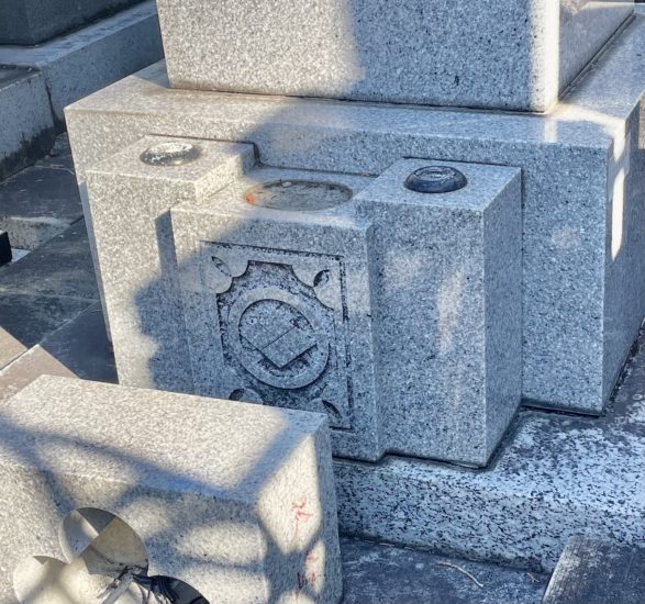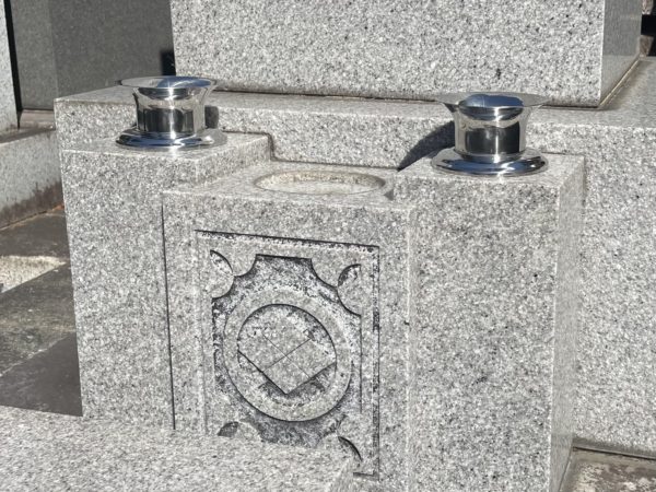 壊れてしまった花筒を工場に持ち帰り穴を掘り直し、ステンレスの花筒を取り付けました。